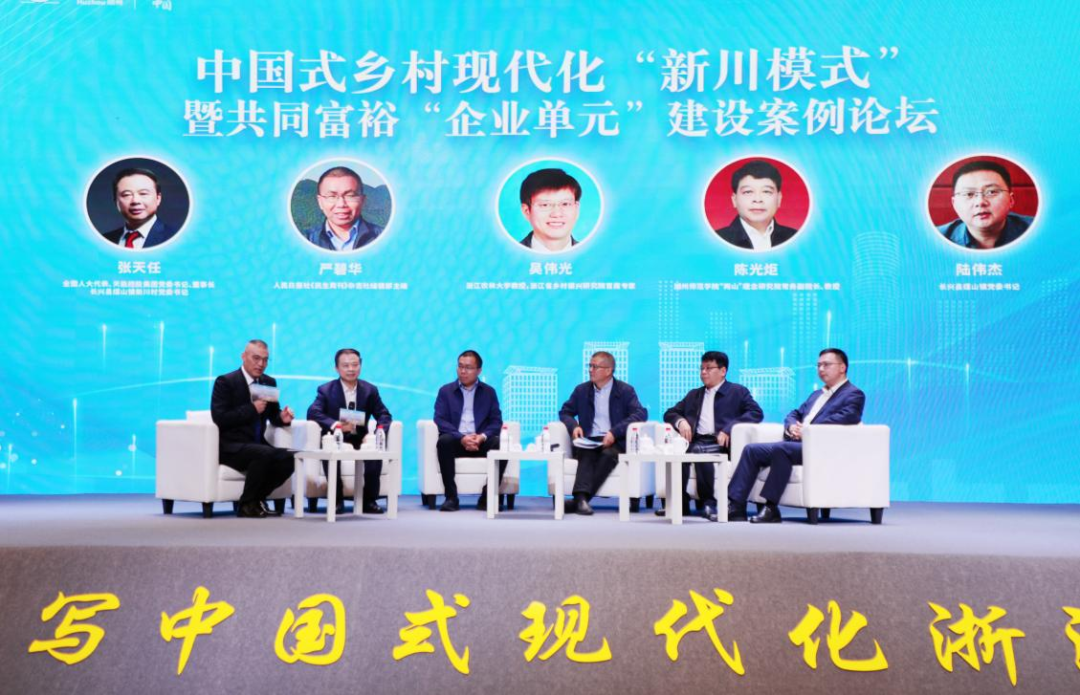 ▲2023年4月26日,由浙江省社会科学界联合会、中共湖州市委宣传部主办的中国式乡村现代化“新川模式”暨共同富裕“企业单元”建设案例论坛召开。